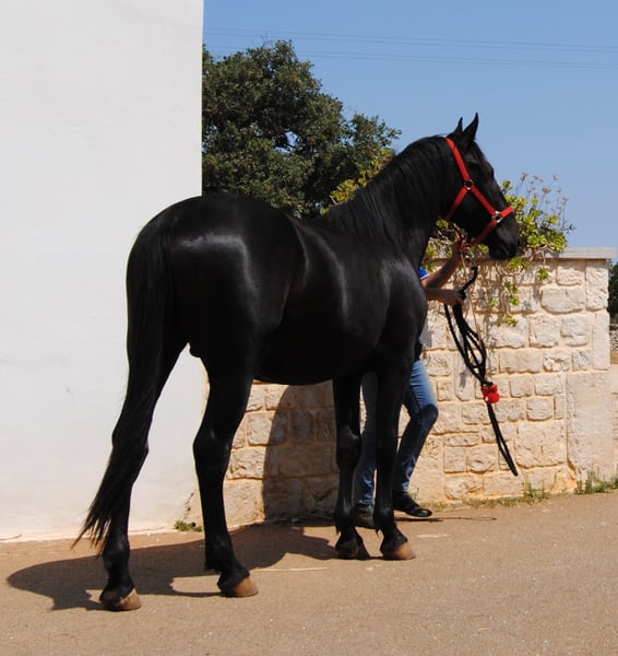 Tindaro was born on April 7, 2023, from Gemma, one of our most important broodmares with outstanding genetics. Gemma descends directly in female line from one of the first mares registered in the breed almost 100 years ago. His sire, Libero di Zappone, owned by the State, is an impressive horse with a baroque conformation, a gentle and friendly temperament, and he passes on smooth, pleasant gaits to his offspring. Tindaro was born into our herd, which comprises about 25 to 30 horses of varying ages, from a few months to over twenty years old. The herd includes mares of all ages, foals of both sexes, and a gelding. Like all our males, he remained in the herd until about 16 to 18 months old. At that point, he was separated and has been living in a large paddock consisting of woodland and pasture, together with other young males and our gelding, who plays an educational role with the young stallions. Currently, he is in the company of our gelding. He is familiar with electric fencing and the stable, which he spends a short time in each day to gradually and pleasantly get used to it. We prefer our horses to always live in large spaces, but we also understand how important it is for them to be adaptable and familiar with the stable, so they feel comfortable if, for any reason, they need to be housed there. Tindaro is not intrusive; he is curious about people but respects personal space, both his own and others’. We have known him since birth and have taught him, through only positive associations, that humans are a point of reference for him and that nothing bad or dangerous happens when people are around. He accepts grooming without issues, knows how to stand tied, and is currently working on picking up his feet, approaching the shower, and injections. We are also working with him on a confident understanding of the trailer, so he can travel calmly to his future owner and for all subsequent trips. We are teaching him, calmly and serenely, to move off at the three gaits, so he can eventually be lunged. Tindaro has smooth, expressive gaits with a natural extension. He is currently 157 cm tall but is expected to surpass 160 cm, as he has just turned two and will continue growing until around five years of age. A Future Together We are looking for a forever home for him, someone who sees the horse as a living being with its own personality and who wants to build a solid, lasting relationship. Someone who understands the fundamental needs of a horse, such as 24-hour access to hay and the opportunity to live in paddocks and in company. We work with positive reinforcement, but also use minimal, non-invasive pressure at the right timing. He has been dewormed and is undergoing his vaccination cycle. Currently, he is entire, but there is the possibility of gelding him here in Puglia, under our supervision at our farm. We are also happy to offer: - Additional videos upon request - Answers and information tailored to your needs - Organizing a veterinary purchase exam suited to your requirements - Hosting you at our farm to meet Tindaro in person - Arranging transport and the necessary documentation Visit our website: https://masseriacapoiazzo.it/ and our social media: Instagram: https://urly.it/3ajhc Facebook: https://urly.it/3ajhd Feel free to contact us for any questions, either here on ehorses or via WhatsApp at +39 346 523 2016. Paola and Giovanni