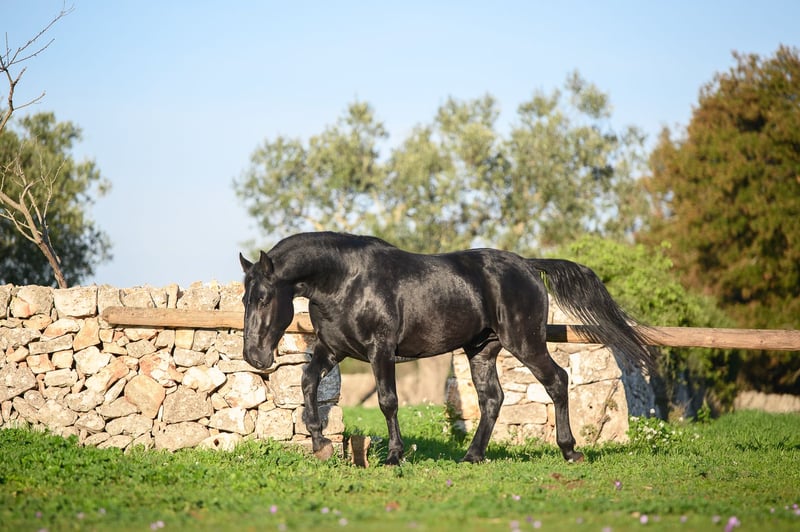 Wunderschöner Murgese-Hengst, geboren im Jahr 2023, mit barocken Linien und einer Stockmaßhöhe von ca. 1,60 m. Totò weist die typischen Merkmale der Murgese-Rasse auf, ergänzt durch ein ausgeglichenes Temperament und eine imposante Erscheinung. Er ist ideal für Reiter, die ein Pferd mit Dressurpotezial suchen, aber auch für Arbeitssprünge oder Ausritte geeignet. Er ist äußerst gut erzogen, gut handhabbar und sehr freundlich im Umgang. Auf Wunsch des Käufers ist eine Kastration möglich.