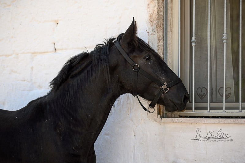 The 2.5-year-old Tristano is still a stallion. He belongs to the baroque Murgese breed and currently has a height of 156 cm, with an expected final height of 164 cm. The costs of castration are already included in the purchase price. Tristano presents himself as friendly and open-minded and has mastered the basics of young horse training. A balanced character and a clear mind make him an ideal partner for leisure, working equitation, or as a future riding or driving horse. The young stallion is still with his breeder in Apulia (Italy) and can be viewed there at any time by appointment. He also comes with X-rays, which can be viewed upon serious interest. We also plan everything else for you – clinical pre-purchase examination, processing of the purchase contract, transport to your home stable, etc. Cavallo Murgese.de – on behalf of and in collaboration with the Italian Murgese Association A.N.A.M.F.