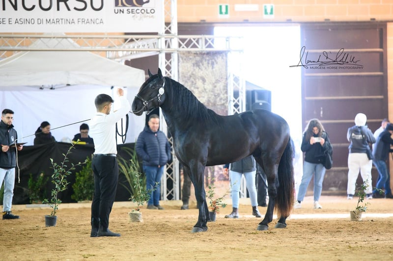 Toto embodies the original lineage of this impressive breed and possesses everything one would expect from a true baroque horse: a strong build, elegant appearance, and an honest, clear gaze. We estimate his final height to be over 165 cm – making him ideal for riders who appreciate size and presence. Toto grew up in a herd environment, knows the basics of being a foal, and always presents himself as friendly, attentive, and people-oriented. Castration on request can be arranged on-site. X-rays are available and can be viewed upon serious interest. We also plan everything else for you – clinical purchase examination, handling of the purchase contract, transport to your home stable, etc. Cavallo Murgese.de – on behalf of and in collaboration with the Italian Murgese Association A.N.A.M.F.