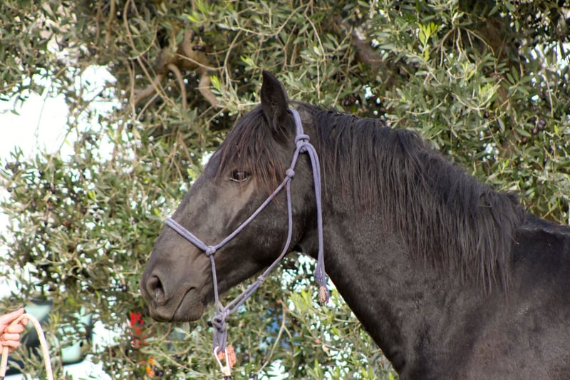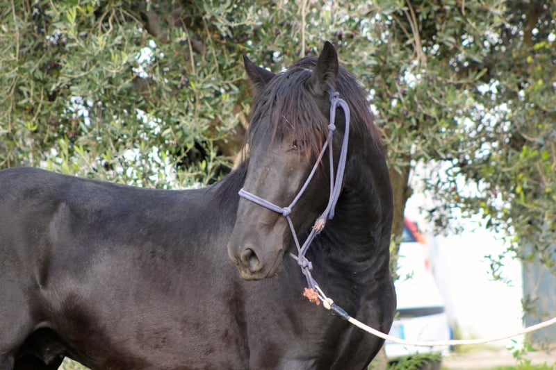 T.F. Proust Tequila Open-minded, very gentle in handling, and playfully cheeky – these words aptly describe Tequila. In the round pen, Tequila is very attentive to his handler and reacts to the slightest changes in body language. He is very affectionate towards people, always up for a little joke ;-). Tequila grew up with some buddies in the herd of the breeder from whom we are now allowed to offer him. He is familiar with life on a masseria, which means: dogs, guard geese, cows, tractors, and more dogs. He has professionally learned the basics of young horse training and is now looking forward to the next steps in his education with you. Currently, Tequila is not castrated but can be upon request and will be done by the breeder (included in the price). Born in 2023, his estimated final height is around 16.1 hh. If you would like to know more about Tequila – we look forward to your message. X-ray images are available and can be viewed upon serious interest. We will also handle everything else for you – clinical pre-purchase examination, contract processing, transport to your home stable, and more. Cavallo Murgese.de – on behalf of and in cooperation with the Italian Murgese Association A.N.A.M.F.