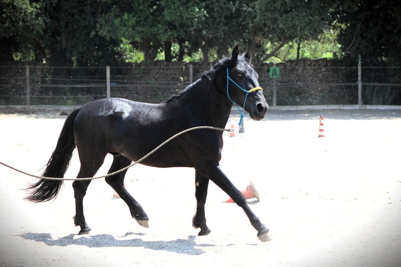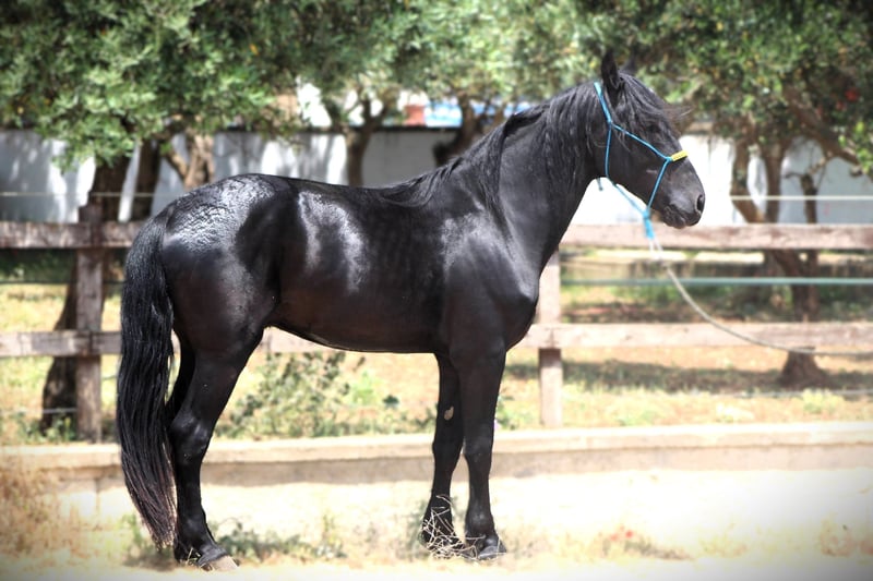 Santiago Santiago is a charming young man who is currently being lightly backed and prepared for a future life as a reliable leisure horse. He is on the lighter side, currently stands around 158 cm tall, and will reach an estimated final height of about 160 cm. He is not easily startled; while he was being lunged, other loose horses came into the riding arena to stalk him, and even the household donkey lay down right in his path. None of this impressed him or made him "spooky." Santiago was purchased some time ago by the trainer who is backing him, and he was castrated a few weeks ago. He is now ready for his new life with a family of his own, but he can stay there for further training. We look forward to inquiries about this handsome horse. More pictures and videos are available upon request. Do you want to meet Santiago in person? He is currently still in his home in Apulia. He also comes with X-rays, which can be viewed with serious interest. We will also plan everything else for you - clinical pre-purchase examination, handling of the purchase contract, transport to your home stable, etc. - On behalf of the Italian Murgese Association A.N.A.M.F.