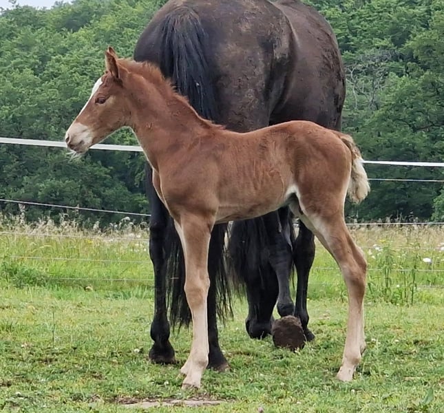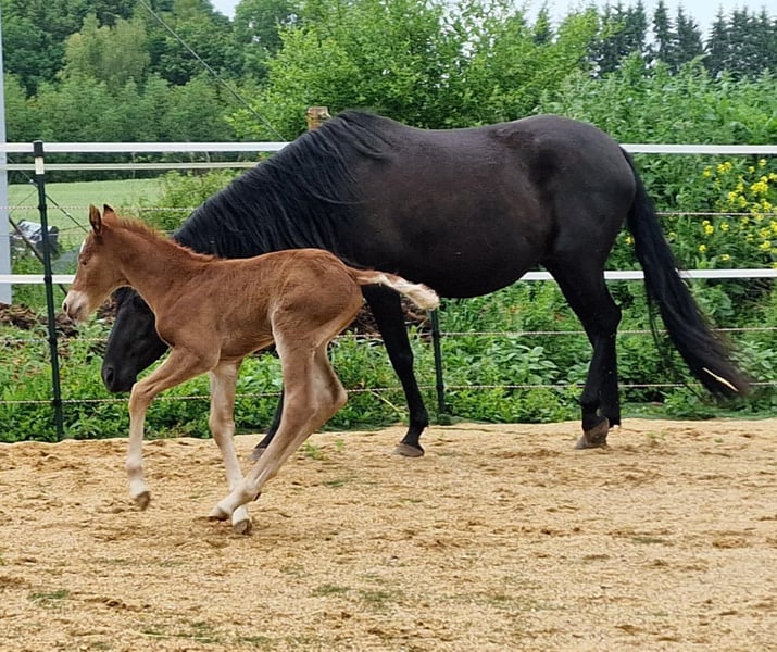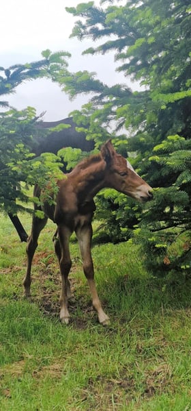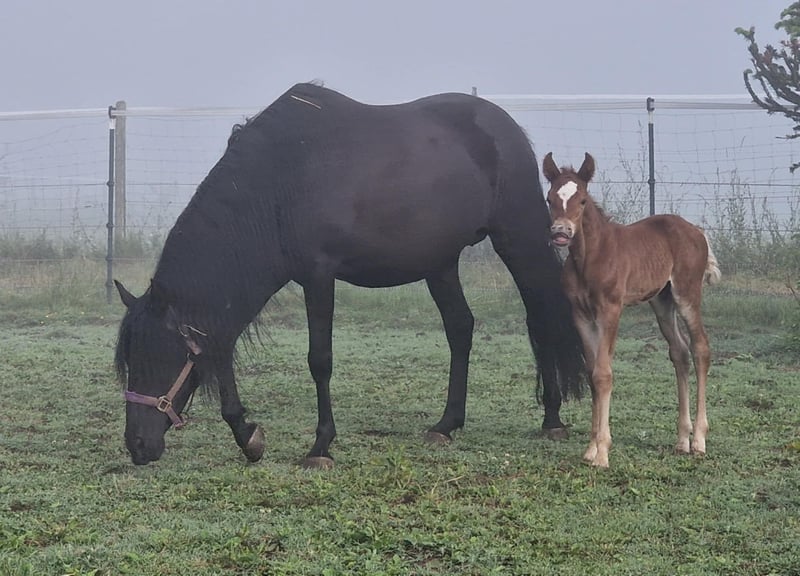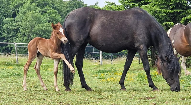 IKO-INFERNO è nato di prima mattina. È stato molto veloce in tutto. Veloce sulle gambe, veloce a bere e veloce a diventare molto socievole. Già ora esplora da solo. Iko cresce robusto nel branco. Giocare quotidianamente fa crescere i muscoli, la resistenza e i polmoni. Allo stesso modo, allena l'equilibrio e il comportamento sociale. Suo padre è il primo stallone Mustang approvato e testato per le prestazioni in Europa. Sua madre è un'assoluta rarità, poiché ci sono solo pochissimi Kigermustangs neri al mondo. Anche lei è in vendita, poiché ci ritiriamo completamente per motivi di salute. Ulteriori cavalli in vendita possono essere trovati sul nostro sito web. www.a1-suffield-mustang.de