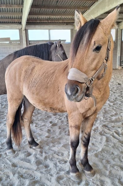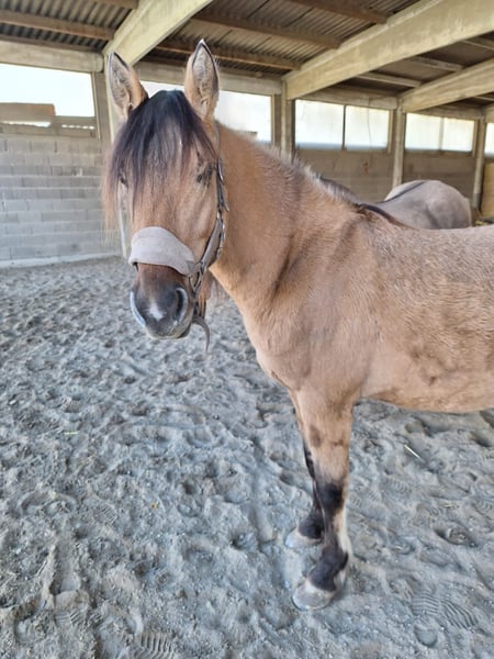Zum Verkauf steht ein schicker Kiger Mustang Junghengst geboren im 10.06.2023, in der Farbe Dun mit 3 Farbiger Mähne. Als Fohlen Prämiert. LJ-Aris ist ein kleiner Diamant, freundlich im Umgang, arbeitet altersentsprechend mit, seine DNA ist für Züchter dieser Rasse interesant da diese in Europa nicht vorhanden ist. Er wächst mit weiteren Hengsten auf um das sozialverhalten zu trainieren. Sein Stkm. wird bei ca. 1,58 m liegen. Gerne kann er zur weiteren Aufzucht bei uns bleiben. Alles weitere gerne unter der 0173 9521224.