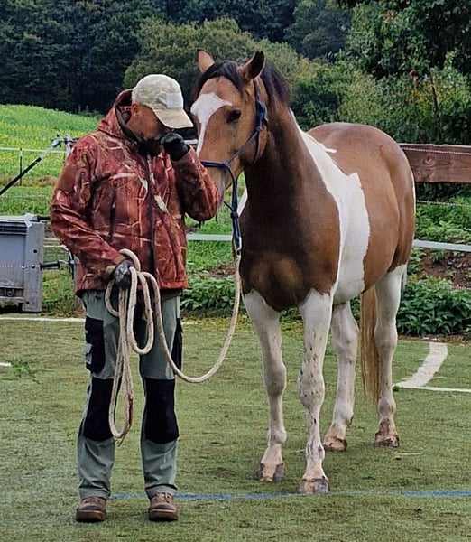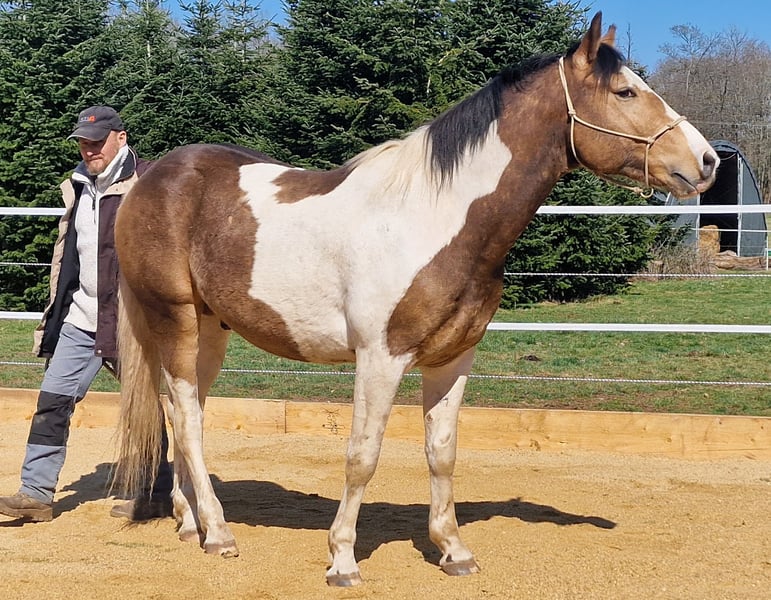 IAN is geboren in de kudde op 19/05/2022. Hij groeit robuust op in de kudde. Momenteel leeft hij samen met een hengst en een ruin. Net als zijn vader is hij een vriendelijke en gezellige vriend voor het hele gezin. Hij geeft zijn mooie bewegingen en goede balans door aan zijn nakomelingen. Hij heeft ook een sterk fundament, maar omdat hij nog in de groei is, weten we niet precies hoe groot hij zal worden. Op dit moment is hij 156 cm lang. We denken dat er nog veel in het verschiet ligt. Als het weer warmer wordt, gaat hij naar het dekstation en gaan we eerst TG sperma van hem winnen. Als dit goed gaat, zullen we hem ook daar in het vers spermacentrum laten als er nog plaats is. We houden u graag op de hoogte.