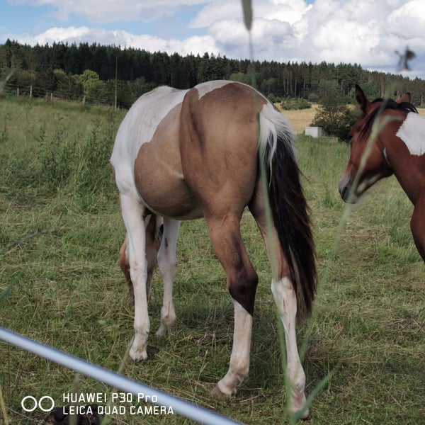 MUSTANG PAINT MIX PAS ENCORE DE NOM, c'est une jument de notre Mustang Silver par le Mustang MAKE OVER ! !! Elle est grande et stable, la jument le sera aussi, Le texte suivra plus tard, si vous avez des questions, n'hésitez pas à appeler le 0160 8038660.
