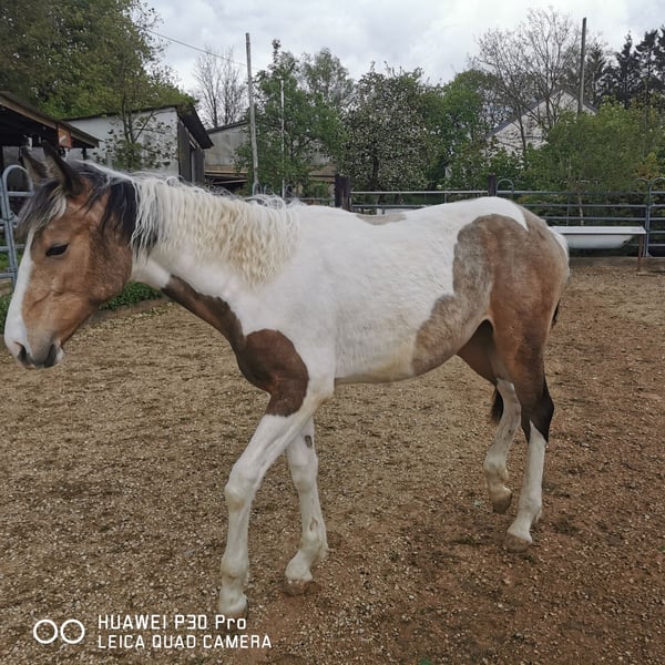 MUSTANG PAINT MIX ANCORA SENZA NOME, è una cavalla della nostra cavalla Mustang Silver del Mustang MAKE OVER !! È grande e stabile, quindi diventerà la borsa, Il testo seguirà più tardi, per qualsiasi domanda si prega di chiamare, 0160 8038660