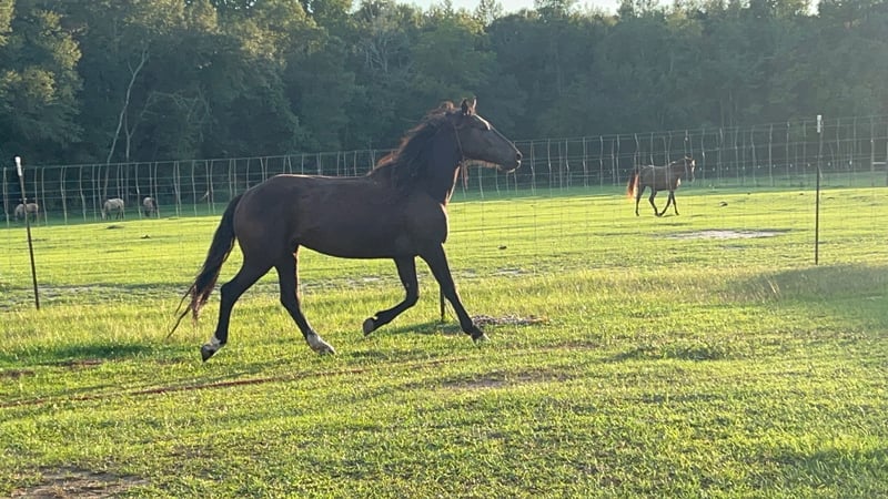 Buying a true American Mustang means so much more than just "buying a horse." At Wild Mustang Ranch, we have made it our heartfelt mission to give these impressive wild horses – who are captured in the USA due to overpopulation – a second chance and to find them loving, appreciative homes. We have already trained and placed over 450 wild Mustangs, and all have benefited from our love, our listening, and our care. Our training ensures that the Mustangs, who leave our ranch after at least a year, can be excellent companions for their new partners. We also offer on-site support for you and your Mustang. We speak German and English. BLACK BEAUTY - another rough diamond! She is characterized by remarkable curiosity, which she consistently demonstrates during training. This trait is particularly valuable as it indicates a strong willingness to learn and openness to new experiences and challenges. Black Beauty approaches every new exercise or task with an attentive and interested gaze, as if she is always eager to expand her knowledge and skills. In dealing with Black Beauty, it quickly becomes clear that she is a horse that seeks to be challenged both physically and mentally. Her curiosity drives her to constantly learn and improve, while her compact stature gives her the necessary strength and agility to successfully implement these learning processes. Thus, Black Beauty is a horse that impresses not only with her appearance but especially with her eagerness and willingness to learn. Suitable for people with more horse experience who wish to further train her. She can leave at any time. ---Follow us on Facebook to keep up with all the news about Black Beauty.--- https://www.facebook.com/wildmustangranch/ ------- Are you interested in a first meeting with Black Beauty via a personal video call? We would be happy to introduce her to you live and answer all your questions. If you want to experience her on-site: Our ranch in the USA has cozy guest houses waiting for you – and we are happy to assist you in organizing your visit. We look forward to your message! ***Has your heart said yes? We will find a solution together regarding the price. Rely on our experience – we take care of the entire process and support you every step of the way.