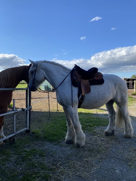 Verkaufe meine Kaltblutstute, da ich mit dem Hobby aufhöre. Sie ist hauptsächlich im Gelände geritten in allen drei Grundgangarten. Zum einfahren bin ich leider nicht gekommen aber sie kennt Doppellonge, macht super gerne freiarbeit, extreme Trail und Wanderritte/ Schnitzeljagd. Sie ist kein reines Anfängerpferd, sie super lieb und nett aber hat manchmal einen dickkopf. Sobald man aber ein Team geworden ist mit Vertrauen und Grenzen ist sie ein Schatz. Ich komme ihr zeitlich nicht mehr hinterher und habe auch nicht mehr die Motivation für dieses Hobby. Sie steht bei mir ganzjährig draußen (boxenhaltung nachts kennt sie würde mir für die aber wieder einen Offenstall wünschen, da die meisten Boxen für sie einfach recht eng sind und sie sich gerne beliebig bewegt) Trecker, Hunde, Kinder, Hühner kein Problem. Sie hat am rechten Vorderbein eine Warze da diese damals bei der Vorbesitzerin nicht richtig behandelt wurde. Diese schränkt sie aber nicht ein. Es ist lediglich ein Schönheitsfehler der gekonnt unter dem Behang verschwindet. Tierärztlich abgeklärt. Sie wird samt Equipment an einen Bestplatz abgegeben.