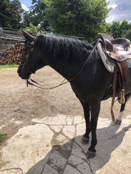 Nora, mein absolut liebes und ehrliches Herzenspferd, wegen persönlicher Umstände zu verkaufen. New Forest Pony Stute, Freizeitpferd, geboren am 06.02.2010, Stockmaß 148 cm, aktuell westerngeritten (war vorher englischgeritten), 4fach beschlagen mit hinten orthopädischen Beschlag (Eiereisen). Aktuell ganz frisch beschlagen mit neuen Eisen! Geimpft, regelmäßig entwurmt und lieb beim Tierarzt sowie beim Hufschmied. 2019 hatte Sie ein wunderschönes und gesundes Hengstfohlen geboren. Beim Verladen braucht sie gut zureden und viel Leckerlis :-) und man muss sie einfach erst überzeugen in den Hänger zu gehen. Aber wenn Sie drin ist steht Nora super bis zum Ziel. Nora stand schon im Offenstall (gemischte Herde), 24/7 auf der Koppel im Sommer und aktuell steht sie nachts in der Box mit tagsüber Paddock. Kennt Doppellonge, Spazierengehen, longieren, Bodenarbeit, leichte Sprünge, Reiten am Platz/Halle und Sie liebt einfach das Gelände. Letzte Vorstellung/Abklärung beim Chiropraktiker war 10/2024 und die letzte osteopathische Behandlung war 04/2025 ohne pathologischen Befund. Bei weiteren Fragen einfach schreiben und/oder Nora persönlich kennenlernen. Preis ist auf VB!!!!! Standort ist 82549 Höfen bei Königsdorf. Um Reittourismus zu vermeiden werden 30€ für jedes Probereiten (bar und vor Ort) berechnet, was natürlich beim Kauf berücksichtigt wird. Kein Anfänger- oder Kinderpony!!!!!!