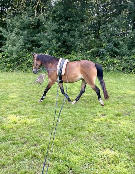 Aus persönlichen Gründen muss ich mich schweren Herzens von meiner tollen New Forest Stute trennen. Geburtsdatum: 02.05.2007 Stockmaß: ca. 1,46 m Diese Stute ist ein absolut ehrliches und feines Pony im Umgang, bei der Bodenarbeit wie auch unter dem Sattel. Sie überzeugt durch ihre Zuverlässigkeit, ihre Feinfühligkeit und ihren ausgeglichenen Charakter. Selbstverständlich ist sie schmiede- und tierarztfromm und lässt sich problemlos alleine verladen. Besonders geeignet wäre sie für ein Mutter-Kind-Gespann oder einen ambitionierten Freizeitreiter, der ein verlässliches und stets bemühtes Pony sucht. In’s Gelände geht sie alleine und in der Gruppe. Sie ist kein Durchgänger, benötigt jedoch einen Reiter, der ihr Sicherheit vermittelt, wenn doch mal ein Monster hinter den Bäumen lungert und sie einen kleinen Hüpfer zur Seite macht. Wer einen treuen Partner für entspannte Ausritte, gelegentliche Dressureinheiten auf dem Platz und Spaß an Bodenarbeit (Horsemanship, Doppellonge, Schlitten fahren usw.) hat, findet hier das ideale Pony. Bei ernsthaftem Interesse freue ich mich über eine Nachricht mit einer Vorstellung von dir. Da ich sie wirklich nur schweren Herzens abgebe, gilt Platz vor Preis.