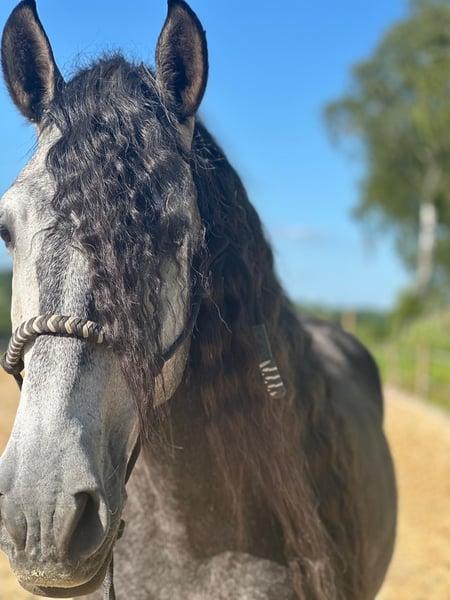 Ganz lieber Kerl Hermoso ist sehr brav im täglichen Umgang und steht still beim Putzen und Schmied. Er geniesst es,wenn man ihm seine Zöpfe macht und ihn verwögnt Geht SEHR brav in den Hänger und Spaziergang neben Verkehr kein Problem Freiarbeit macht viel Freude und er ist in allen GGA longiert Er steht derzeit mit 2 Wallachen im Offenstall mit 24h Heu. Er ist verträglich und vertragt gut Heu. Er hat vorher in Deutschland gelebt und kennt Koppel und Gras. Box kennt er auch. Derzeit barhuf Muss ihn jetzt dringend abgeben. Platz vor Preis