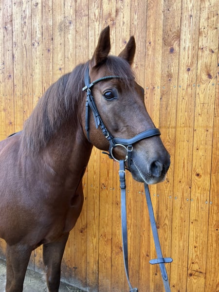 Zum Verkauf steht ein wunderschöner New Forest Wallach in der attraktiven Farbe Dunkelfuchs mit einem Stockmaß von 1,52 m. Er wurde im März 2024 gelegt und zeigt keinerlei Hengstmanieren. Der Wallach steht brav in der Herde und ist vorne beschlagen. Im Umgang ist er stets freundlich, unkompliziert und schmiedefromm. Unter dem Sattel zeigt er sich zuverlässig und gelassen, ist jedoch etwas triebig und wünscht sich daher einen erfahrenen oder ambitionierten Freizeitreiter, der ihn motiviert und konsequent fördert. Im Gelände ist er brav und unerschrocken. Insgesamt ein ehrliches Pony mit viel Potenzial für Freizeit, Bodenarbeit oder leichte sportliche Ambitionen. Ein Probereiten ist nach Absprache möglich, die Gebühr von 25 € wird bei Kauf selbstverständlich verrechnet. Telefonnummer: 01797003894 Gern auch per WhatsApp schreiben.