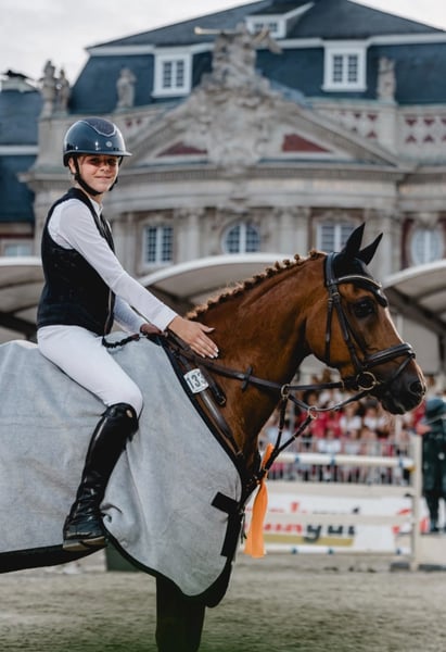 As my pony days come to an end this year, I am selling my pony Orchid’s Raimond. He joined us in 2022, and I have competed with him from E to M jumping levels. He always gives his best for his rider in the arena and is perfect for style and time jumping. "Fire" always aims for a clear round and even helps his rider when things don’t go perfectly! He is agile, quick on the ground, and has numerous placings from E to M jumping classes, including: • Winner of the CWD Kids Cup 2023 (A** with jump-off) • Overall winner of the Pony-Trophy Tour 2024 (3rd place in the 115cm final with jump-off) • District Champion 2022, 2023, 2025! • Winner at the Sieger Turnier in Münster (110cm with jump-off) • International victory in the 110cm class in Hagen + additional international placings • International placement in the 115cm class in Peelbergen • 2nd place in the 120cm class at the Xanten Pony Tournament He is a real ribbon collector and always reliable! He will only be sold into the very best hands! If you are interested or need more information, I am happy to assist. Viewing and test riding by appointment. Phone: 0173 8736775