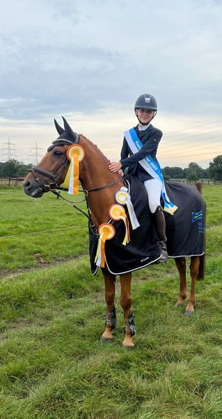 Da meine Pony Zeit dieses Jahr endet, verkaufe ich mein Pony Orchid‘s Raimond. Er ist 2022 zu uns gekommen und ich bin mit ihm von E bis M Springen geritten. Er kämpft immer für seinen Reiter ihm Parcours und ist perfekt für Stil und Zeitspringen. ,,Fire’‘ möchte immer Null gehen und hilft seinem Reiter auch mal wenn es nicht perfekt passt! Er ist wendig und Grundschnell und hat zahlreiche Platzierungen von E bis M springen Zum Beispiel; • Gewinner CWD Kids Cup 2023 ( A** mit Stechen) •Gewinner der Gesamtwertung von der Pony-Trophy Tour 2024 ( Im Finale Platz 3 im 115cm mit Stechen) • Kreismeister 2022 ,2023 ,2025 ! • Gewinner beim Turnier der Sieger in Münster (110cm mit Stechen) • Internationaler Sieg im 110cm in Hagen + weitere internationale Platzierungen • Internationale Platzierung im 115cm in Peelbergen • 2. Platz im 120cm beim Ponyturnier in Xanten Er ist ein richtiger Schleifen Sammler und man kann sich immer auf ihn verlassen! Er wird nur in allerbeste Hände verkauft! Bei Interesse oder für weitere Informationen stehe ich gerne zur Verfügung. Besichtigung und Probereiten nach Vereinbarung möglich. Telefonnummer : 0173 8736775