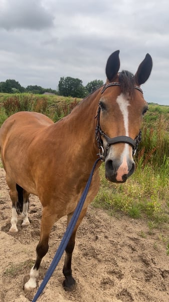 Spirit est un poney gentil et brave avec beaucoup de talent en lui. Il a 8 ans et mesure 146,5 cm. Il convient à tout cavalier et aime travailler pour vous. Il est classé en dressage L et en saut d'obstacles L (90 cm). Il aime aussi beaucoup le cross. Spirit excelle dans tout et prend du plaisir partout ! Allez-vous continuer avec lui ?