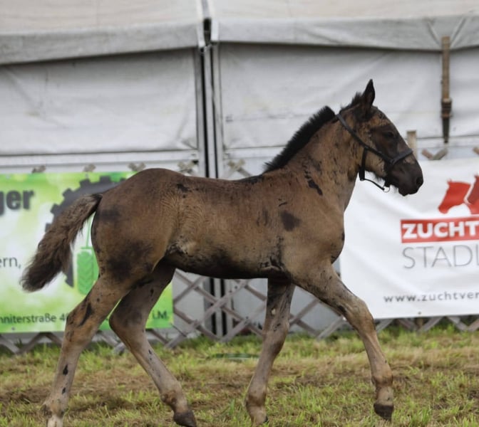 Puledro Noriker – Taurus-G Vulkan XVI (nato il 15.05.2025) Padre: Taiga Vulkan XV PrH. Madre: Lotti n. Gabor Diamant XIII PrH. Il nostro puledro stallone Noriker, Taurus-G Vulkan XVI, cerca una famiglia amorevole a partire da metà dicembre 2025. Cresce con noi nel branco, insieme a un altro puledro Noriker. Taurus è un puledro molto curioso, socievole e desideroso di imparare. Fin dalla seconda settimana di vita, accompagna la madre in passeggiata in campagna, anche come cavallo da maneggio al guinzaglio. Partecipa con entusiasmo al programma di educazione del puledro – impara a portare il capestro, a ricevere le ferrature, a essere spazzolato – tutto funziona già molto bene. Ha persino portato con orgoglio il saddle della madre nel box. Ha già visitato una fiera e ha partecipato con successo al campionato dei puledri a Stadl-Paura, dove si è mostrato con sicurezza. WN 7,75 Sua madre, Lotti, con WN 7,5, viene montata, lavora con impegno davanti alla carrozza e si distingue per il suo carattere calmo e affidabile. Suo padre, Taiga Vulkan XV PrH., era un cavallo stallone impressionante, con un temperamento forte – noto per le sue performance in tiro a 10 cavalli e davanti a un carro romano con altri stalloni. Taurus cresce in modo amorevole ma deciso e continuerà a svilupparsi nel branco, con molto movimento, contatti sociali e buona cura. Condizioni di vendita: A partire da metà dicembre 2025 Ovviamente sverminato e con passaporto Il ferratore ha già controllato, ma non sono stati necessari interventi Taurus non verrà svezzato da un giorno all’altro: iniziamo sempre con una propria box per la notte (con contatto visivo con la mamma) e durante il giorno può tornare al pascolo con lei. Questo processo sarà gradualmente aumentato. Prezzo trattabile Per ulteriori aggiornamenti sulla crescita di Taurus, seguici su Instagram: _nadjagoetz_