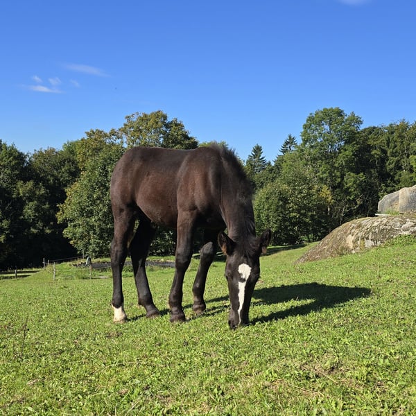 Noriker Fohlen – Taurus-G Vulkan XVI (geb. 15.05.2025) Vater: Taiga Vulkan XV PrH. Mutter: Lotti n. Gabor Diamant XIII PrH. Unser Noriker Hengstfohlen Taurus-G Vulkan XVI sucht ab Mitte Dezember 2025 ein liebevolles neues Zuhause. Er wächst bei uns im Herdenverband gemeinsam mit einem weiteren Norikerfohlen auf. Taurus ist ein besonders neugieriges, menschenbezogenes und lernfreudiges Fohlen. Schon seit seiner zweiten Lebenswoche begleitet er seine Mutter ins Gelände, auch als Handpferd am Strick. Beim Fohlen-ABC macht er fleißig mit – Halftern, Hufe geben, Putzen – alles klappt schon sehr gut. Sogar den Sattel seiner Mutter trägt er stolz selbst in den Stall. Er durfte bereits eine Messe besuchen und hat erfolgreich am Fohlenchampionat in Stadl Paura teilgenommen, wo er sich souverän gezeigt hat. WN 7,75 Seine Mutter Lotti WN 7,5 wird geritten, läuft fleißig vor der Kutsche und überzeugt durch ihren ruhigen, zuverlässigen Charakter. Sein Vater Taiga Vulkan XV PrH., war ein beeindruckender Hengst mit starkem Wesen – bekannt für seinen Einsatz im 10-Spänner sowie vor dem Römerwagen mit anderen Hengsten. Taurus wächst liebevoll, aber konsequent auf und darf sich weiterhin im Herdenverband mit viel Bewegung, Sozialkontakt und guter Betreuung entwickeln. Abgabe: Ab Mitte Dezember 2025 Natürlich entwurmt und mit Pass Hufschmied hat auch bereits darüber geschaut musste aber nichts machen Taurus wird auch nicht von heute auf morgen entwöhnt, wir beginnen immer mit einer eigenen Box über Nacht (Blickkontakt zur Mama vorhanden) und am Tag darf er wieder mit Mama auf die Weide. Das wird dann langsam gesteigert. Preis VHB Mehr Einblicke in Taurus Aufwachsen gibt es auf Instagram: _nadjagoetz_