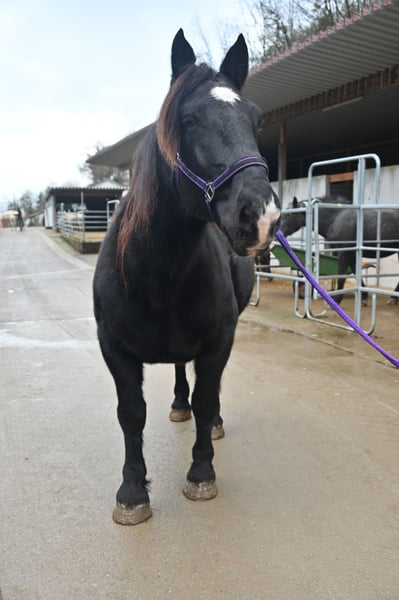 Miriam est une jument Noriker noire de 156 cm, amicale et douce. Son tempérament est équilibré et elle est exempte de vices. Née le 04 mars 2013, elle est montée et attelée en paire. Miriam a été enregistrée comme mère de étalon dans le livre des juments avec un score de 7,64 points et a eu plusieurs poulains. Meli, son poulain de 2023, peut être vu dans notre écurie. Miriam connaît aussi bien les boxes que le système de stabulation libre. Elle est habituée aux enfants, aux chiens, aux chats et aux machines de ferme. Elle se comporte bien chez le maréchal-ferrant, est pieds nus et monte sans hésitation dans le van. Miriam est régulièrement vermifugée et testée négative pour le PSSM1. Son père est l'étalon 1b Schneider Vulkan. Mère : Pongau Elmar XIV Nous serons ravis de vous présenter les chevaux du lundi au samedi. Il est possible de faire une séance d'essai sur le terrain ou en extérieur, ainsi que du longe et du travail à pied, afin de mieux connaître votre cheval de rêve. Cela coûte 40 € par séance et sera remboursé lors de l'achat. Les leçons de équitation réservées ne sont pas remboursables.
