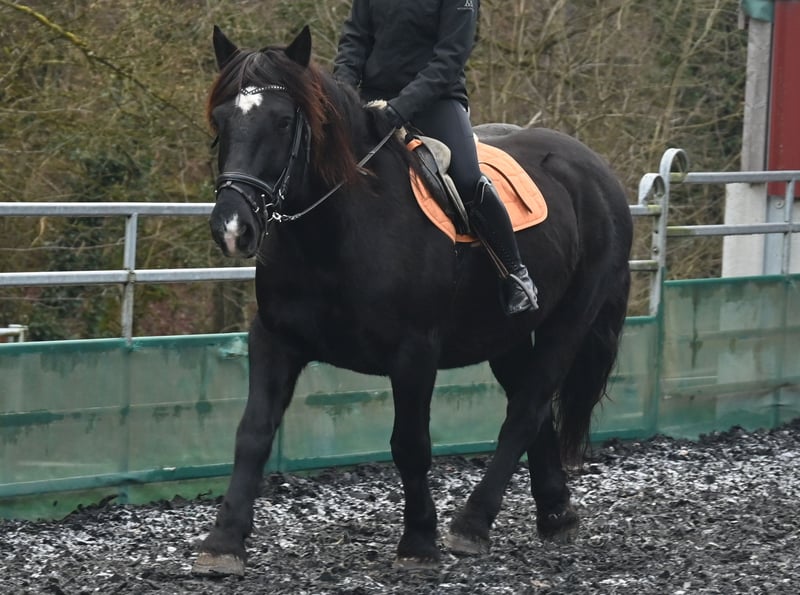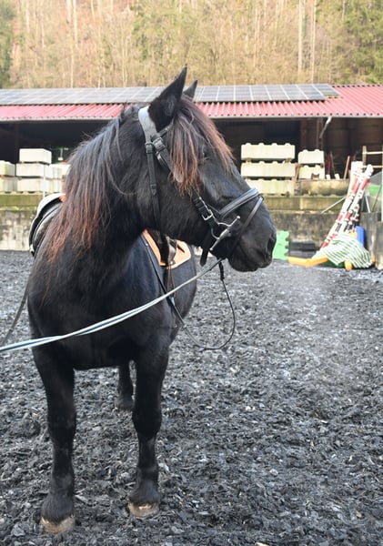 Miriam is a 156cm tall, friendly and well-behaved Noriker black mare. Her temperament is balanced and she is free of naughtiness. She was born on 04.03.2013 and has been ridden and driven in two harnesses. Miriam is registered in the studbook as a stallion dam with 7.64 points and has had several foals. Meli, her foal from 2023, can be viewed at our yard. Miriam knows the stalls as well as the open stable. She is used to children, dogs, cats and farm machinery. She is well-behaved at the farrier, she is barehoof and she gets into the horse trailer without hesitation. Miriam is regularly wormed and tested PSSM1 free. Her sire is the 1b stallion Schneider Vulkan. MV: Pongau Elmar XIV