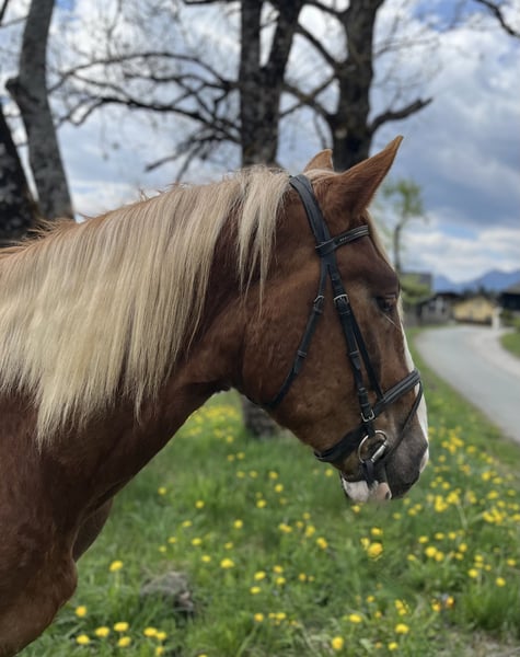 Gabor Diamant XVII Junger Norikerwallach mit bestem Charakter Abstammung: Vater: GIOVANNI DIAMANT (Dunkelfuchs) Mutter: Tina (Fuchs) Zum Verkauf steht Gabor Diamant, ein sportlicher, im kleinen Rahmen stehender (Stm. 157 Cm ) 4 jähriger Noriker Wallach, der durch seinen ausgeglichenen Charakter überzeugt. Der Dunkelfuchswallach wurde bereits zweispännig gefahren und zeigt sich dabei jederzeit zuverlässig und nervenstark und vor allem sehr fleissig und arbeitswillig. Auch im Strassenverkehr zeigt er mit seinen jungen Jahren schon gute Nervenstärke. Er wurde schonend angeritten und geht schon bereits in allen 3 Grundgangarten solide durchs Genick. Auch beim Ausreiten ist er immer interessiert, aber nicht schreckhaft. Selbstverständlich wurde Gabor regelmässig entwurmt. Die Zähne wurden bereits vor einem Monat geschliffen. Er hat auch einen vollen Grippe/Tetanus Impfschutz und ist genetisch PSSM N/N getestet. Ausserdem ist er Barhuf und wurde aufgrund seiner guten Hufe noch nicht beschlagen. Beim Hufschmied ist Gabor komplett unkompliziert und auch die verschiedenen Koppelfahrten mit dem Anhänger meistert er problemlos. Besonders hervorzuheben ist sein ruhiges, freundliches Wesen – Durch den Schulbetrieb bei uns ist Gabor es gewohnt, dass ihn ständig verschiedene Kinder putzen, führen und streicheln. Er begegnet Mensch und Tier stets mit Gelassenheit. Zwischendurch ist er immer wieder mal in der Box, aber die meiste Zeit im Offenstall. In der Herde ist er sehr rangniedrig. Aus diesem Burschen wird mal ein toller Verlasspartner für Freizeitreiter- und Fahrer Gabor freut sich auf ein liebevolles neues Zuhause!