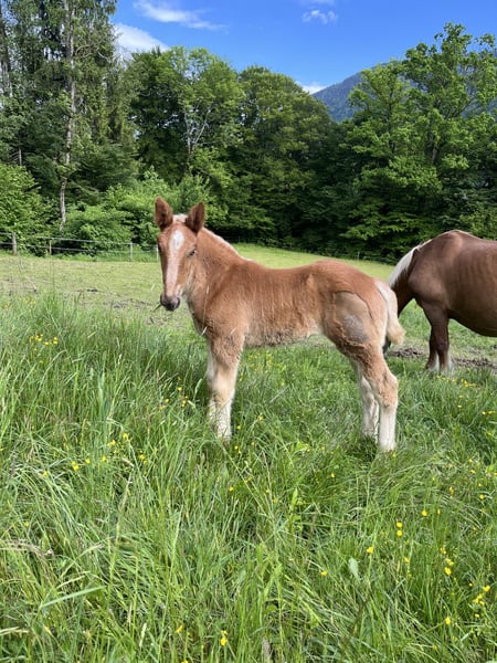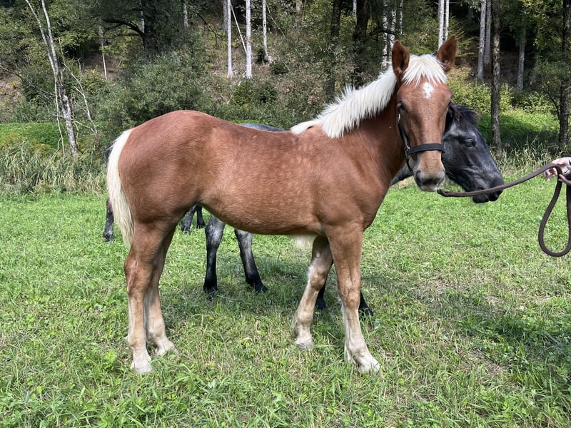 Wegen Bestandsverkleinerung müssen wir uns leider von unserer Lillibeth trennen. Das am 08.04.2025 geborene Fuchs Fohlen bringt in ihrem Pedigree beste Vorraussetzungen für Zucht und Sport mit. Die Mutter Leona, erreichte bei der Landesjungstutenschau den Endring und wurde in der Schauklasse 2a mit 7,82 Punkten bewertet. Aus ihr wurde auch der gekörte Hengst Giovanni Diamant XVI gezogen, ein Halbbruder des Fohlens. Lillibeth’s Vater ist Boss Nero XVII, welcher bei der Reitpferdeprüfung 2024 den Sieg nachhause holen konnte. Lillibeth verbrachte den Sommer auf der Alm ist somit bestens sozialisiert und kennt auch das Fohlen ABC. Sie überzeugt mit bestem Charakter, einer schönen Lichtfuchs Farbe und schneeweißem Langhaar. Hast du Interesse unserem kleinen Schatz ein neues Zuhause zu schenken? Melde dich gerne für weitere Informationen, wir freuen uns auf deine Nachricht!