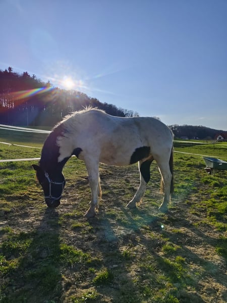 Schweren Herzens, muss ich mich von meinem Herzenspferd trennen, da ich es mir leider weder Zeitlich noch Kostentechnisch leisten kann. Zeus ist noch sehr jung und derzeit noch nicht eingeritten. Ich habe ihn noch nicht lange übernommen und die letzte Zeit damit verbracht, an seinem Gewicht zu arbeiten, da er sehr dick ist. Habe es geschafft schon einiges runterzukriegen.... Bin bereits einmal auf ihm gesessen, was er super brav mit gemacht hat. Er hat ein großes Herz, ist unfassbar verschmust und würde alles für seinen Reiter tun, sobald man das Vertrauen gewonnen hat. Er beißt, steigt oder tritt nicht. Hebt die Hufe, ist verladefromm, und brav beim Hufschmied. Aus ihm wird bestimmt mal ein traumhaftes Reitpferd, nur leider nicht mit mir. Ich möchte ihm die Ausbildung bieten, die er verdient und dafür fehlt mir leider die Zeit und das Geld. Er hat auf seinem Rechten Auge eine nicht diagnostizierte aber vermutete Sehschwäche, da er recht schreckhaft auf der Seite ist. Das schränkt ihn sonst aber nicht ein. Er zeigt potenzial zum Springen, kann ihn mir aber auch gut als Westernpferd vorstellen. Ich wünsche mir für einen schönen platz mit Offenstall und optimaler Ausbildung. Platz vor Preis. Optimal wäre es, wenn seine Partnerin Daphne (22 Jahre) mit übernommen werden würde. Natürlich würde das nicht extra kosten. Die 2 sind unzertrennbar und es wäre schön, wenn sie zusammen bleiben könnten. Zubehör kann alles übernommen werden. Bei Fragen oder Interesse gerne Anrufen oder eine Nachricht schicken unter 0660 7451669