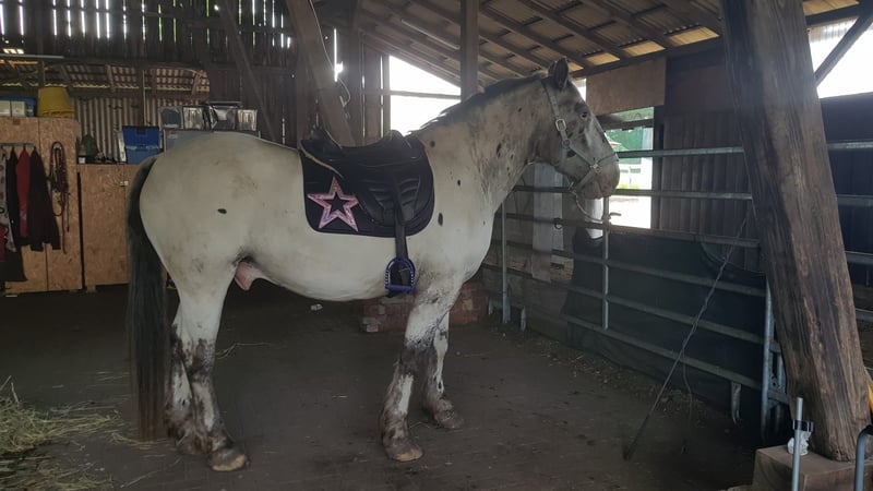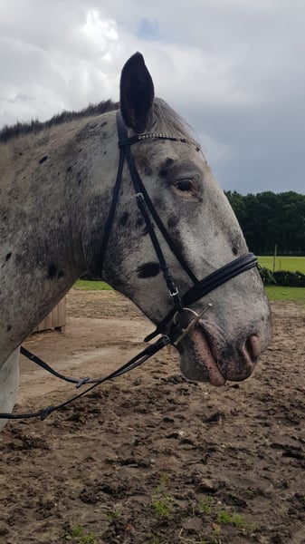 Prachtige tijgerbont. Goed in de omgang, ondanks zijn formaat. Longeerbaar met zadel en bit, gereden in stap. Door een strenge winter en gebroken arm heeft hij wat rust gehad, maar hij is nog wat overbouwd, dus de pauze was niet slecht. Bekend met hoefsmid en loading. Hij is nog nooit ziek geweest, maar heeft lichte zomereczeem, wat met een deken geen probleem is. Hij stond in de paddock en kent ook een box, maar hij geeft de voorkeur aan de paddock. Hij is vertrouwd met hengsten, ruin en merrie; hij springt niet op. Heeft papieren en een paspoort. Transport kan in overleg geregeld worden.