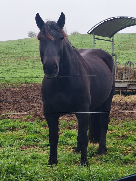8-year-old Noriker gelding – a true heart horse seeking a 5-star home Our beloved gelding Gimbel (8 years old) is looking for a new home where he can receive full attention and plenty of time. He has a height of 1.68 m (16.1 hh). He is a barefoot horse. In winter, he stays on a paddock during the day and in a box at night, while in summer, he is on pasture 24/7 in a herd of geldings. Therefore, we cannot specify how he gets along with mares in the herd. Gimbel is a very people-oriented horse who enjoys contact with "his" person. He loves groundwork, is affectionate, and is simply a joy to handle daily. He is always well-behaved in the terrain and generally shows no vices under saddle. Gimbel loves children but is not exclusively a children's horse nor an beginner's horse. Children and beginners have ridden him before, and he has been used in one or two therapeutic riding sessions, but he requires a clear, confident handler who can guide him forward. Due to a hoof abscess, he had a break from training, but we are now gradually rebuilding his fitness for the winter months. This is not an emergency sale! We are looking for a person for Gimbel who can be his number one and who enjoys lovingly supporting his development. Saddle and bridle are included in the sale. For an additional small fee, two outdoor rugs can be purchased. 📍 Location: 64720 Michelstadt Price: €3,800 If you are genuinely interested, we look forward to hearing from you and arranging a meeting.