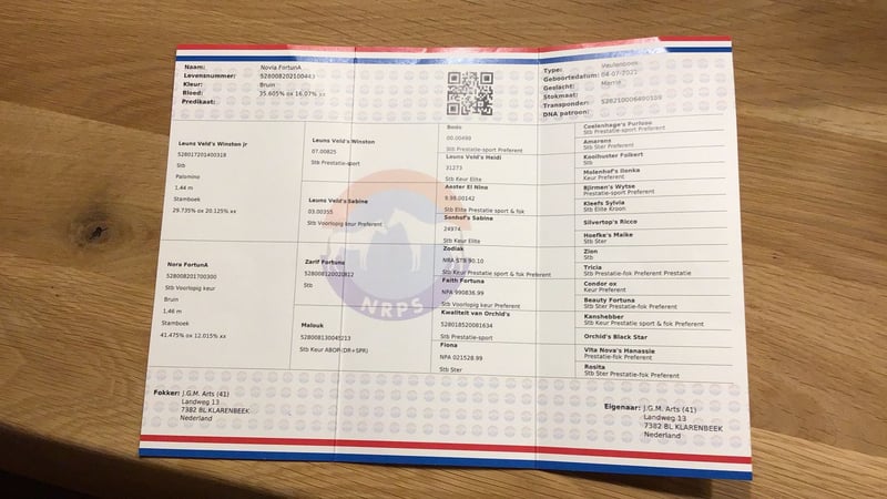 Interessante merrie voor de toekomst uit een uitstekende bloedlijn. Vader is Leuns Veld’s Winston Jr . Moeder is de Elitte merrie Nora Fortuna. Als veulen heeft ze op de Nationale keuring een 1ste premie behaald. Merrie is nog maar enkele maanden zadelmak en dient uiteraard nog doorgereden te worden. Merrie is te koop wegens inkrimping en er nog enkele veulens op komst zijn. Voor wie van een uitdaging en een winterproject houd is dit een oplossing. Voor meer gegevens of beschikbare filmpjes, kan via wattsap.