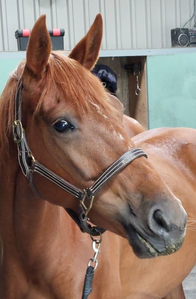 Isarah van Drakensteyn, alias Saar, is van april 2022 en is nu goed zadelmak. Een zeer lief mensgericht paard dat ook heel sociaal is met andere paarden en probleemloos in een (gemengde) kudde loopt. Ze heeft een heel fijn karakter. Ze heeft een slanke bouw en meet 1,65/1.66 m maar is nog erg jeugdig waardoor ze zeker nog wel wat doorgroeit… Amazone op de film is 1,78 m. Saar is zeer correct gebouwd met rechte benen en goede voeten. Zij is in juli 2025 röntgenologisch goedgekeurd zonder bemerkingen incl. hals en rug. Saar heeft heel goede rontgenfoto's! Ook is zij, voordat ze beleerd werd, bij de tandarts zijn geweest. Haar vader is de prachtige hengst Vainqueur (Vivaldi x Rubioso) die in Duitsland succesvol GP loopt onder Dorothee Schneider. Haar moeder is een ster prestatie merrie van de GP hengst Sorento (Sandro Hit x Donnerhall) die nu 19 jaar is. Saar was haar eerste veulen (4e generatie eigen fok) en vorig jaar heeft ze een merrieveulen van de hengst Red Viper gekregen. Deze merrie heeft ook nog altijd prachtige droge benen en heel gezond.... Daarachter zit de GP hengst Rubiquil (Rubinstein x Roemer), het paard waar Laurens van Lieren zijn carrière mee is begonnen. Saar zou bijzonder geschikt zijn voor een amazone die de overstap van de pony's naar de paarden wil maken, maar ze is niet geschikt voor een onervaren of onzekere ruiter. Ze is vlug en sensibel maar op een goede manier, nooit bokken of steigeren. Ze staat keurig stil bij opstappen. Ze zou echter ook geschikt zijn voor de fokkerij. Ze wordt verkocht onder voorbehoud van gunning en valt in de iets hogere prijsklasse. Wil je eens kennismaken met deze mooie oranje dame? Dat kan, stuur mij een appje (ivm werk niet bellen). Saar staat momenteel in het midden van het land, komt begin mei weer terug naar huis (net boven Amsterdam) Graag alleen appen ivm werk 06-11343740
