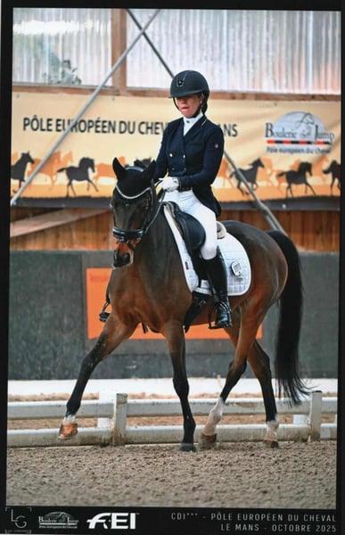 Sa cavalière ayant atteint la limite d'âge pour monter en poney, il est temps pour nous de trouver une nouvelle maison pour notre super poney FEI Merlin. Merlin est arrivé chez nous en 2020 et il a permis à sa cavalière de gravir tous les niveaux du dressage régional, national et international. Ce poney a toujours une énorme envie de performer dans le ring en compétition. Il aime travailler chaque jour et est un parfait maitre d'école. Il a besoin de sortir chaque jour en prairie mais il aime bien le confort de son boxe. Il a permis à chacune des 3 cavalières qui a eu la chance de le monter d'accéder au niveau des compétitions internationales. Merlin a offert un rêve à sa cavalière cette saison 2025 en lui permettant de se qualifier et de participer à 3 CDI et de terminer sa saison avec un superbe 5ème dans la reprise individuelle du CDI Le Mans. Il aime voyager, il est facile à manipuler. Notre priorité est de trouver une bonne maison qui pourra prendre soin de lui et lui permettre de faire vivre une nouvelle aventure équestre à son futur cavalier. His rider having reached the age limit for riding ponies, it's time for us to find a new home for our wonderful FEI pony, Merlin. Merlin came to us in 2020 and has helped his rider progress through all levels of regional, national, and international dressage. This pony still has a tremendous desire to perform in the competition ring. He loves to work every day and is a perfect schoolmaster. He needs daily turnout in the pasture but also enjoys the comfort of his stall. He has enabled each of the three riders who have had the privilege of riding him to reach the level of FEI international competition. Merlin fulfilled his rider's dream this 2025 season by allowing her to qualify for and participate in three CDIs and to finish the season with a superb 5th place in the individual test at the Le Mans CDI. He loves to travel and is easy to handle. Our priority is to find a good home that can take care of him and allow him to give his rider a new equestrian adventure.