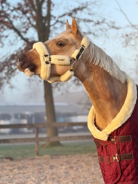 This talented, almost 4-year-old Palomini gelding, son of Davinci du Bois, is ready for the future! A pony with a very child-friendly temperament, he gives a very safe feeling. He's very level-headed and calm, enjoys attention, and has a very pleasant disposition! His dam is a daughter of Winston Jr., who comes from a very strong dam line. We are certain this golden pony has a bright future ahead of him. We are looking for a wonderful home where he can make a child very happy! Asking price €12.5 Pony may be inspected, buyer's costs are at the buyer's expense.