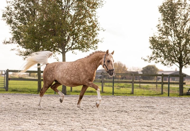 This talented nearly 4-year-old Palomini gelding, sired by Davinci du Bois, is ready to take on the future! A pony with a very child-friendly temperament, he provides an extremely safe feeling. He is very level-headed and calm, enjoys attention, and has a very pleasant disposition. His dam is a daughter of Winston Jr., coming from a very strong dam line. We are confident that this golden pony has a bright future ahead. We are seeking a wonderful home where he can bring great joy to a child! Asking price: €14,500 The pony can be inspected; costs incurred by the buyer are at the buyer's expense.