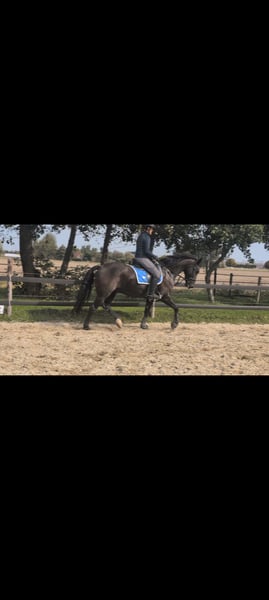 Nero is 7 years old. He has been with me since he was 1 year old. Unfortunately, I have to look for a new home due to lack of time. Nero is an all-round horse of about 1.60m (never officially measured). He enjoys dressage the most. Due to pregnancies, we have only competed in one competition, but he was very well-behaved and we achieved a win. He can also jump and is well-behaved on trail rides. He is also good when riding without a saddle, with a neck rope, and during in-hand dressage. He would also do great as a coaching horse. He does need a clear and confident rider. Sometimes he can be a bit of a toddler who enjoys playing around, but because of this, he needs clarity. He is always properly dewormed, vaccinated, and has seen the dentist, farrier, and osteopath. He finds the trailer a bit exciting, but with practice, he will be fine. He loads well. A vet check is possible at the buyer's expense. There are photos available of his back and part of his neck and legs. He is currently outside all day and in the stable at night. I would like him to go to a home where he can spend a lot of time outside during the day and with a rider who wants to work with him. A good home is more important than the price.