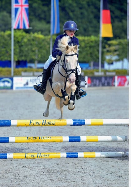 Ponny deportivo encantador en venta – Coolblue (1,35 m) 💙 Coolblue es un pony C enérgico y confiable, con un corazón de oro. Salta con facilidad recorridos de hasta 80 cm (nivel B/L) y lo hace con mucho gusto. Un excelente pony de aprendizaje para un niño que desea progresar en la disciplina deportiva. Se vende porque nuestra hija ha crecido y ya no lo necesita. Es tranquilo en su comportamiento, fácil en competición y muy querido por todos. 🐴✨