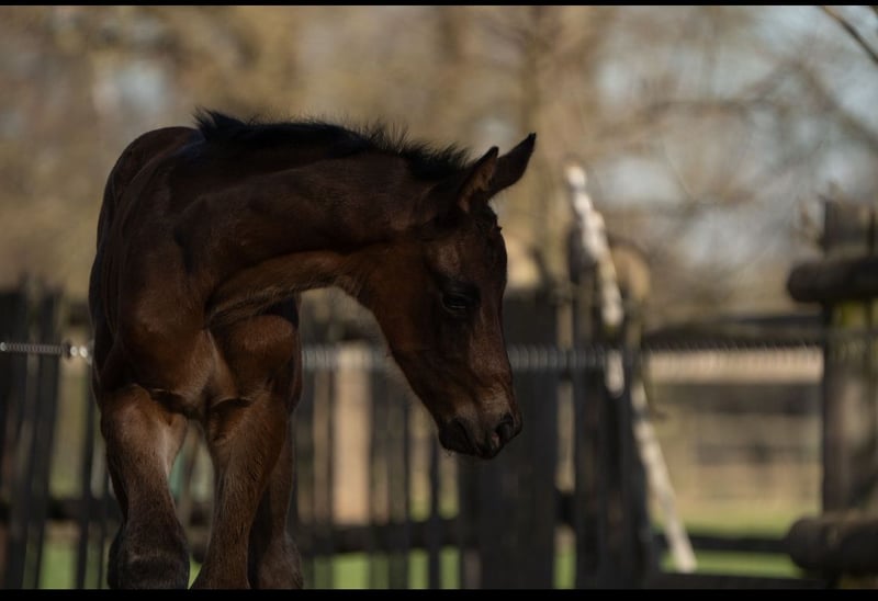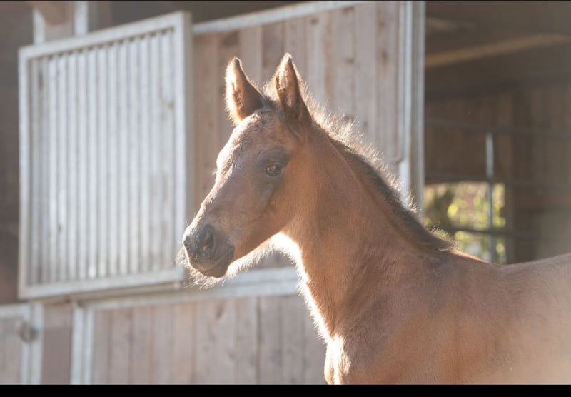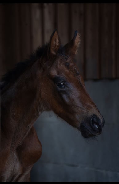 Here we present a very well-constructed son from the first crop of Lindgren. Typey, long-legged, uphill built, and awarded as an elite foal by the Oldenburg Association, he impresses with three excellent basic gaits. Here you can secure a true rough diamond that will surely have all doors open for him. He grows up in a herd environment, is halter-trained, and is regularly presented to the farrier and dewormed. He is incredibly curious and attentive and very easy to handle. The full sister of his mother was once a Verdener Elite horse, qualified for the Bundeschampionat, and has already produced three offspring that are successfully competing in international Grand Prix sport.