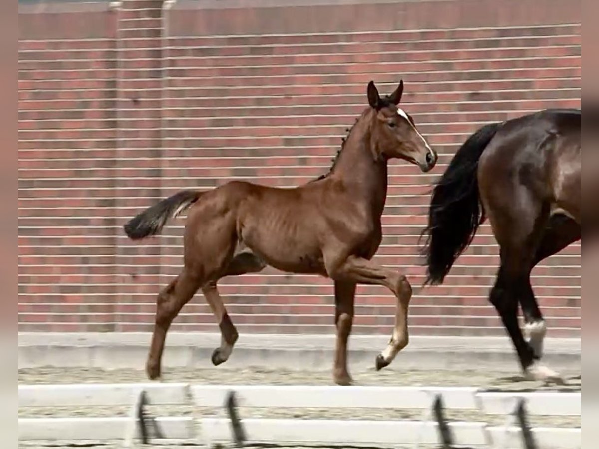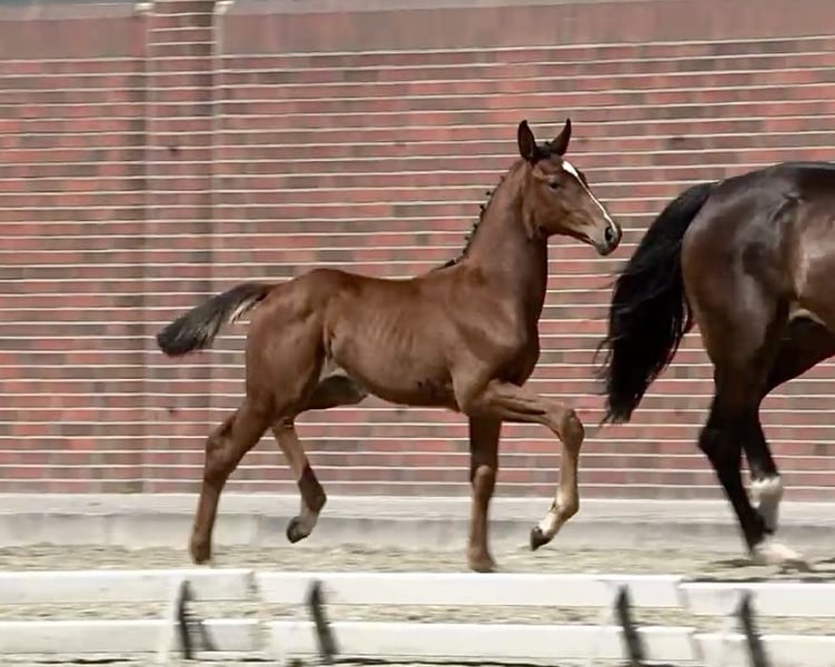 Premium Oldenburg colt by Verbier x Fidertanz x Alabaster, available from April 20, 2025 A tall, leggy foal with excellent scope, very good movement, and a strong back. The sire, Verbier, was the champion stallion of Oldenburg 2024 and the winner of the 2025 licensing test. The dam, Amira, is a full sister to Franziskus (from the Daffy-Toban xx family), who was very successful in dressage under Ingrid Klimke. She has already produced several type- and movement-rich auction foals for Vechta. Please contact us at 0173 9263870 if interested.
