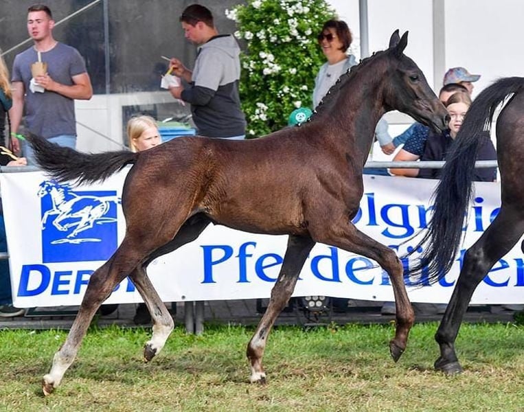 Stylish, sport-type colt foal with three very good basic gaits. The foal is people-oriented, fearless, and eager to learn. The colt foal achieved an outstanding fourth place at the foal championship 2024 in Wüsting, at the regional championships North, with scores for type, movement, and overall impression (7 x 9.0 and 2 x 8.5). Information about the dam line: Sire: Federer (by Farrell from Fürstenball, dam's sire: Livaldon by Vivaldi) from the Sosath stallion station in Lemwerder. He is six years old and placed up to M-level dressage, has completed the HLP with a score of 8.12, and recently won a dressage horse M class. Further details about the sire can be found on the homepage of the Sosath stallion station. Dam: Lotta (by Fontane from Florencio, dam's sire: Rubin Royal x Placido), grandmother Luna is an elite mare. The dam, herself successful in competition, has four siblings that are highly successful in dressage up to S*** level. Seller: Heike Timmermann Schüttinger Weg 26 26969 Butjadingen Phone: Mobile: 01727815549 E-Mail: heike_timmermann@web.de