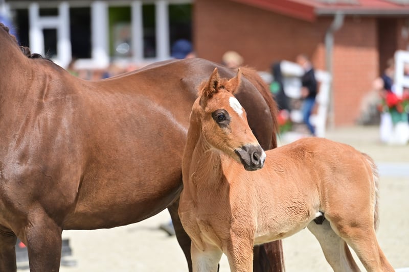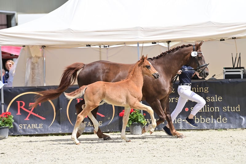 The young man has a super open-minded character and is very trusting and people-oriented. He is very curious but cautious in a pleasant way and not too pushy, which makes handling him very easy and therefore a lot of fun. His walk, trot and canter are exceptional. All of his dam's offspring are mega rideable and really want to work. Several have already been sold abroad. In the meantime he has really started to change his coat and is getting really dark, his tail seems to be getting dark on the inside and blond on the outside, just like his dad's About the dam line: The dam is an elite mare by Fürst Piccolo x Weltmeyer. I bought her as a foal and trained her myself. As a young horse she was awarded 9s in trot and won novice level dressage competitions with 8s. She also won her SLP and was the best 3-year-old mare in Westphalia that year. One half-brother is licensed. Successful offspring are available and 2 half-siblings can be viewed on site.