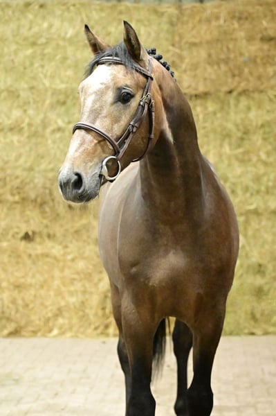 Dieser zweijährige Hengst von Mylord Carthago ist wirklich ein Blickfang: Ein auffälliges Youngster mit einer schönen, modernen Konstitution und einer natürlichen, athletischen Ausstrahlung. Er vereint Typ, Ausdruck und Qualität und zeigt bereits das Gleichgewicht sowie die Eleganz, die man von einem zukünftigen Sportpferd erwartet. Auf der Mutterseite finden sich mehrere einflussreiche deutsche Grundsire: Argentinus, Almé Star und Grannus – Namen, die für Kraft, Mentalität und echtes Sporttalent stehen. Diese außergewöhnliche Familie hat bereits mehrere Top-Performers hervorgebracht, darunter: Agrostar (1,60 m – Mandy Porter) Luna Luna (1,60 m – Vicky Roycroft) Stella Nova (1,50 m – Sofia Westborg) Im Freilauf überzeugt Maybach durch seine Leichtigkeit und mühelose Bewegungsart. Er bewegt sich mit einer lockeren, geschmeidigen Oberlinie und zeigt natürliche Anpassungsfähigkeit in seinen Gängen. Über den Sprung begeistert er weiterhin: Er besitzt eine ausgezeichnete Mentalität, viel Bewusstsein und bemerkenswerte Vorsicht. Seine Einstellung und Sensibilität sind klare Stärken, die auf eine vielversprechende sportliche Zukunft hindeuten. Mit seinem starken Pedigree, modernem Typ, korrekter Bewegung und äußerst vielversprechenden Springqualitäten stellt Maybach eine besonders interessante Investition für jeden dar, der ein junges Pferd mit echtem internationalem Potenzial sucht. Bei direkter Ausfuhr in Nicht-EU-Länder entfällt die Mehrwertsteuer (21 % wird auf 0 % reduziert). Falls die Ausfuhr verzögert wird (aber so bald wie möglich erfolgt), wird die Mehrwertsteuer nach Erhalt des offiziellen Ausfuhrdokuments (erstellt vom Zoll) rückerstattet.