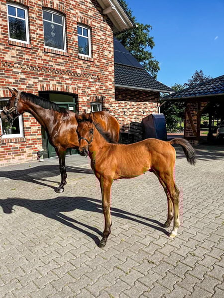 We are selling our colt, born on June 22, 2024, from a family breeding. He is a very outgoing stallion who seeks closeness to humans. Fresh and cheerful, yet not cheeky. From the very first hour, he has been very correct on his legs and has good movement quality. His above-average walk is particularly noteworthy. His pedigree includes Vivaldos, Zack, and Sandro Hit. The dam is a state premium mare by Zack KWPN and Sandro Hit. Information about the dam line: State premium mare