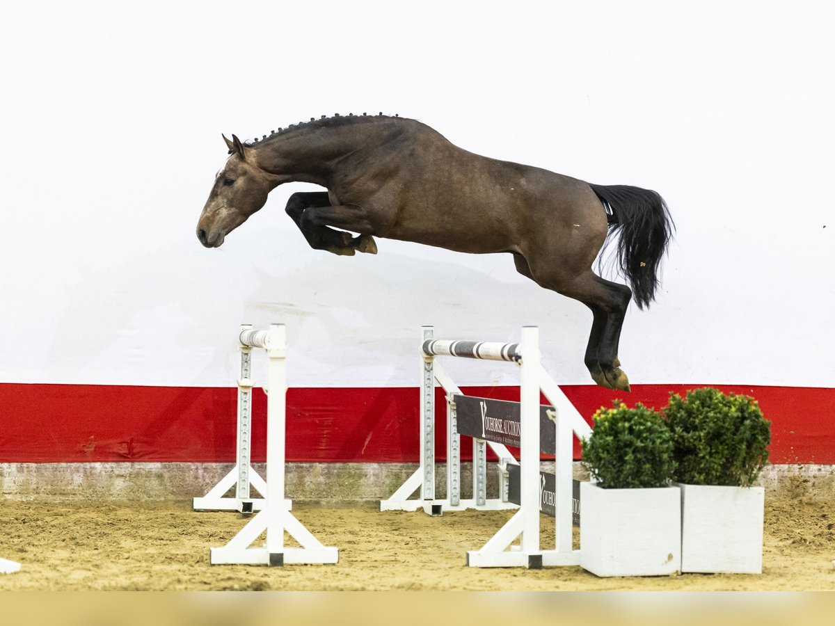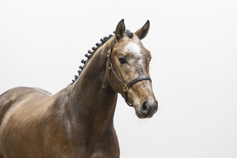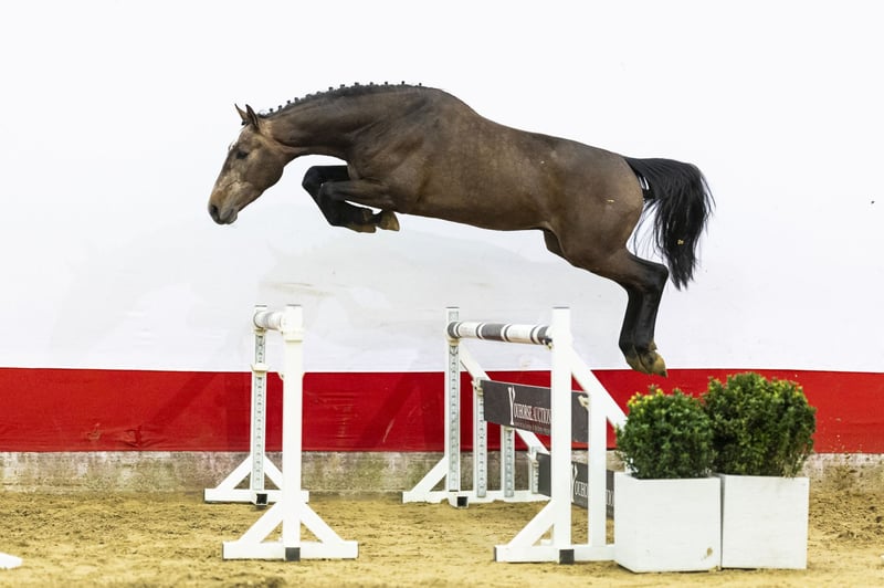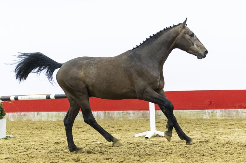 Direct by Mylord Carthago. A modern, light-footed horse with good balance. He jumps easily and immediately shows good technique when asked to perform. He demonstrates easy scope, quick reflexes and natural lightness over the fence. A horse with multiple sport possibilities and also interesting for the hunter ring in the future.