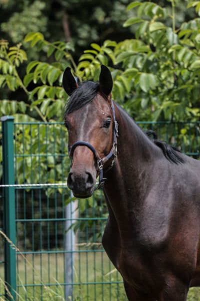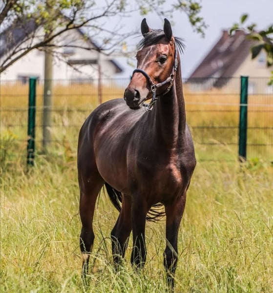 Dexter ist jetzt 3 jährig und wartet darauf gearbeitet zu werden. Er wird von Tag zu Tag immer schöner und weiß dass glaube ich auch, momentan genießt er noch spielerisch frei zu laufen oder etwas freispringen zu gehen. Dexter hat vorne einen kleinen Chip der aber ohne Probleme raus gemacht werden kann er war nie lahm daher ist er auch etwas günstiger vom Preis. Er hat eine enorme Grund Qualität mit sehr aktiver Hinterhand.