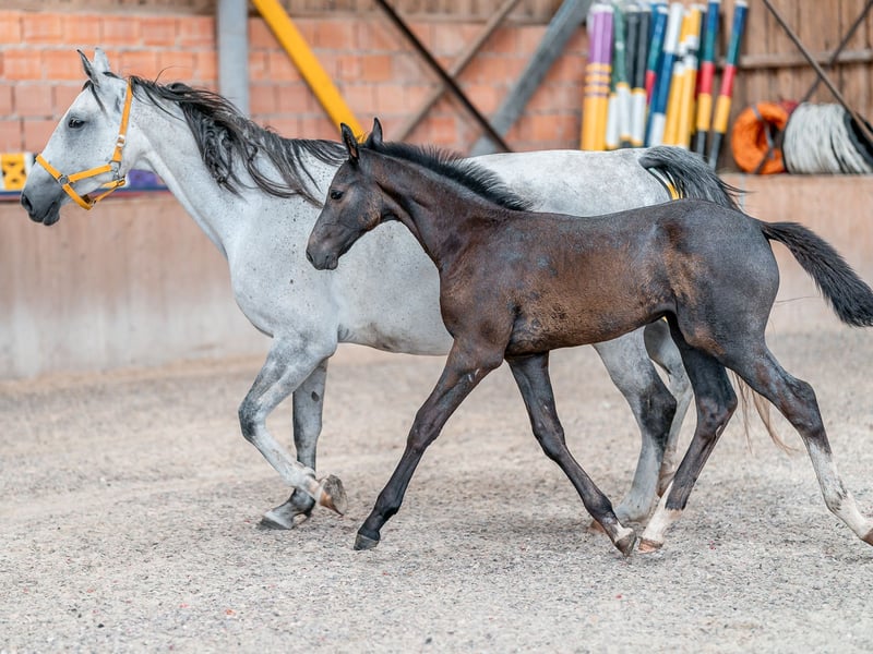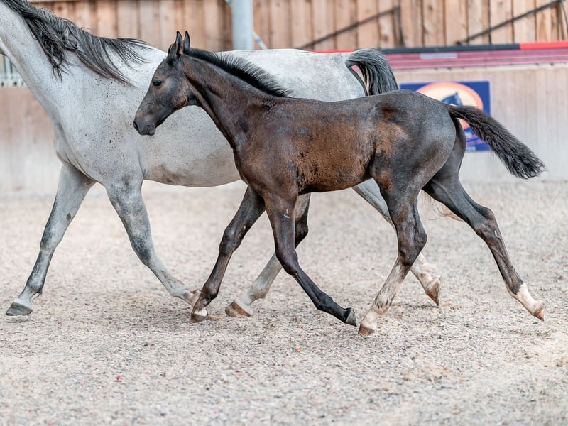 Puledro bello e corretto nato il 24.4.2023n da una madre provata nata nel 2016. La diga ha un'eccellente tecnica di salto, quindi ci sono grandi speranze per il puledro. Allevato da un piccolo ma dedicato allevatore con molta esperienza nell'allevamento e nella cura dei cavalli. I cavalli hanno un ambiente piacevole e tranquillo, vivono all'interno in grandi box e vanno fuori al pascolo ogni giorno. Colt è facile da catturare e permette di essere spazzolata e curata. Può essere ritirato in ottobre. Quaprice di Cornet, un bellissimo figlio del famoso padre Cornet Obolensky. Padre Cornet Obolensky è stato campione europeo a squadre con la squadra tedesca ed è stato vittorioso a quota 1,60. In termini di allevamento, Cornet's Quaprice è una rarità grazie ai tori Lux Z e Pilot nel pedigree successivo. Dalla linea diretta mare provengono anche da. Cornet Obolensky di Cornetiero che hanno successo a livello 1.60, così come Student (di Captain Fire) e Classic (di Captain Fire). Lo stesso Quaprice di Cornet colpisce per la sua bella presentazione e la sua pronunciata correttezza. Con una base asciutta, una potente linea superiore e una groppa perfettamente costruita, lo stallone si distingue in termini di conformazione. Ha un passo leggero nei salti, ha un sacco di visione d'insieme, un modo di saltare eccezionale e una perfetta tecnica delle zampe posteriori. Nel corso si dimostra con alti valori di cavalcabilità e un ottimo modo di saltare: l'anno scorso è stato in grado di ottenere diverse vittorie e piazzamenti nelle prove di salto ostacoli.