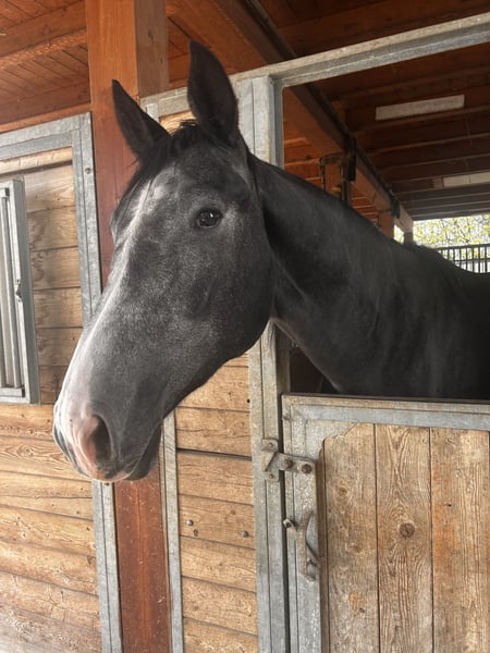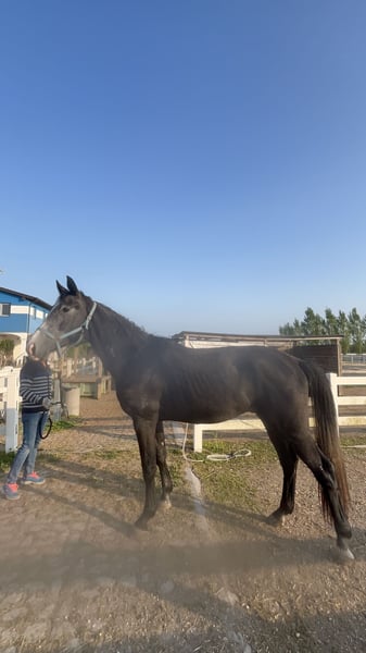 He will be 3 years old in June . The sire is Bellany, a dressage champion. https://youtu.be/d8hHcMx13Qk?is=W3934_o9ytZoyhZQ High-quality dressage prospect with a nice temperament. Very kind and willing to work. Well-behaved on the ground, knows the lunge, He has beautiful movements, is forward and curios He’ll most likely be grey. He is now approximately 170 cm tall, but he is still growing. We’re located near Venice