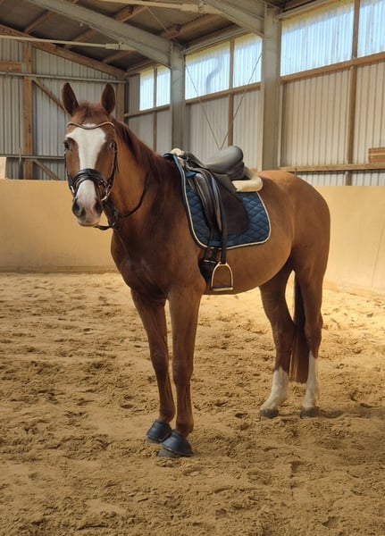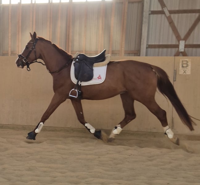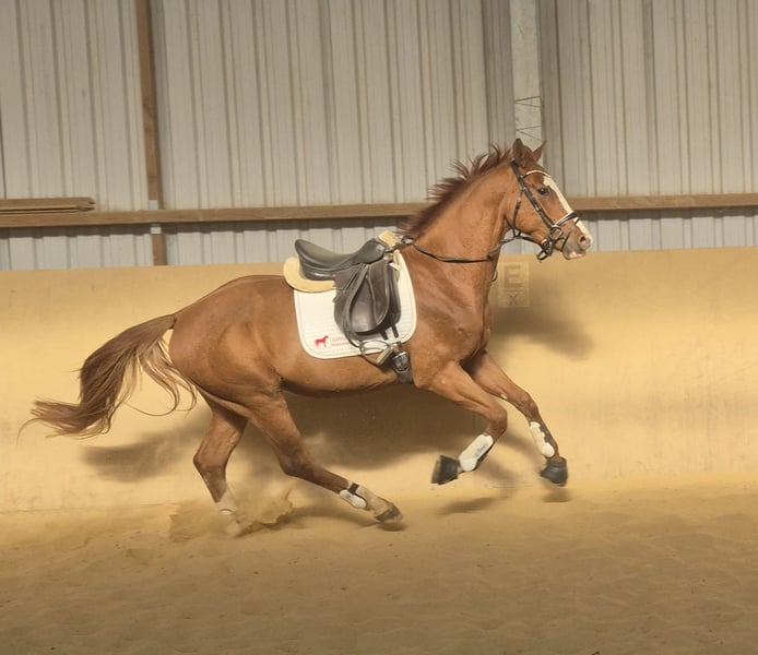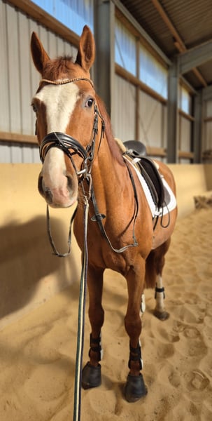 Verkauft wird hier ein Fast 4 Jähriger Oldenburger hengst . No name ist ein 2022 Geborener Oldenburger Hengst ca.168 cm v. Total Hope, Mette Marit, Totilas, sir Donnerhall Moonlight ,weihegold. No name ist ein total artiger Hengst mit hervorragenden GGA . Derzeit angeritten in den GGA. Er ist super sitzbequem. Mit einem super gemüht immer artig weiß nicht das er Hengst ist . Durch seine GGA ist er für den Sport bestens geeignet. Ist vorne Beschlagen regelmäßig geimpft, sowie Entwurmt Eine Aku kann natürlich gemacht werden auf Wunsch vom Käufer. Eine Besichtigung sowie Probereiten ist möglich. Bei weiteren Fragen stehe ich gerne zu Verfügung . 0173-9022834