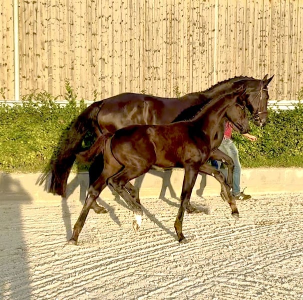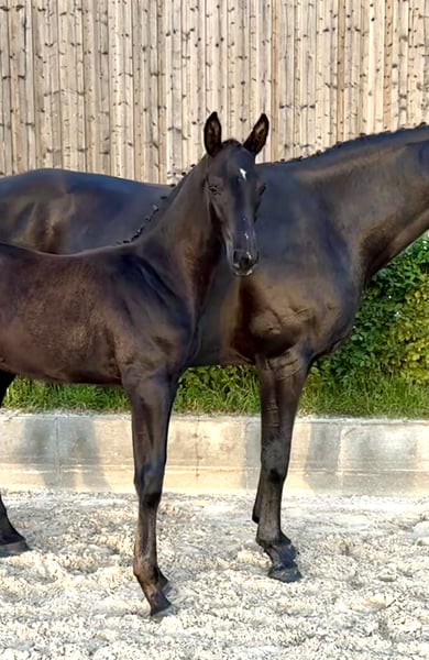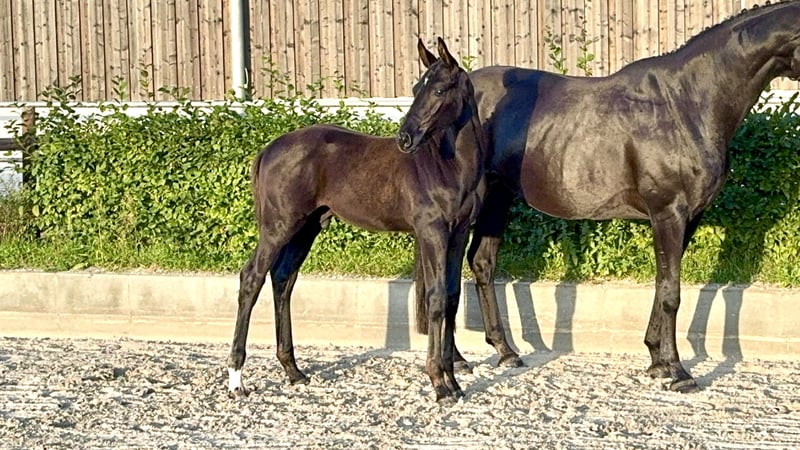 Stylish, eye-catching black stallion with strong movement and top pedigree! Full brother to the GP-successful mother.