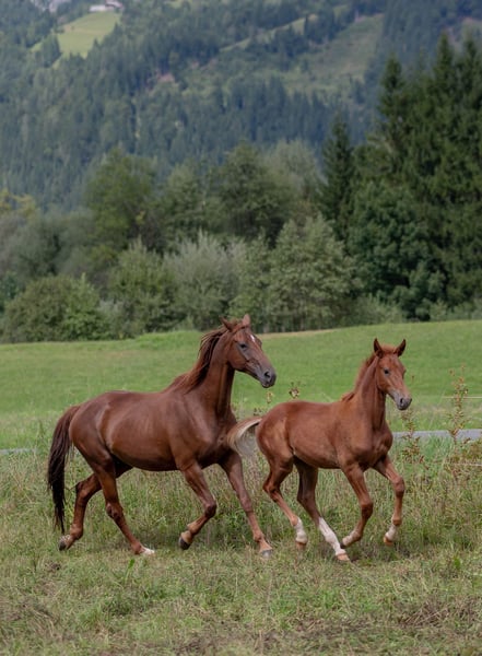 Hengstfohlen aus April 2025, von Cantino/Don Corazon/ Belmondo. Vielseitig gezogener Nachwuchs im klaren Fuchsrot. Korrekt gestellt und den Menschen gegenüber sehr aufgeschlossen. Für alle Sparten offen. Ende Oktober umzugsbereit. Standort Kärnten
