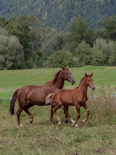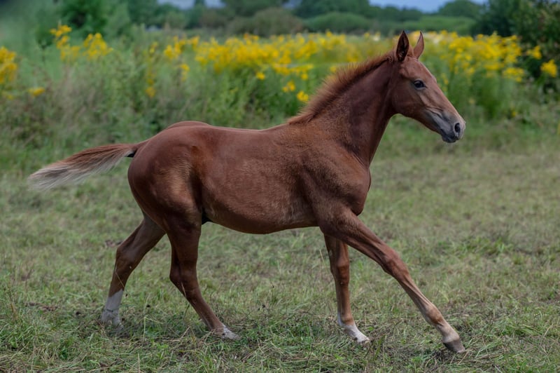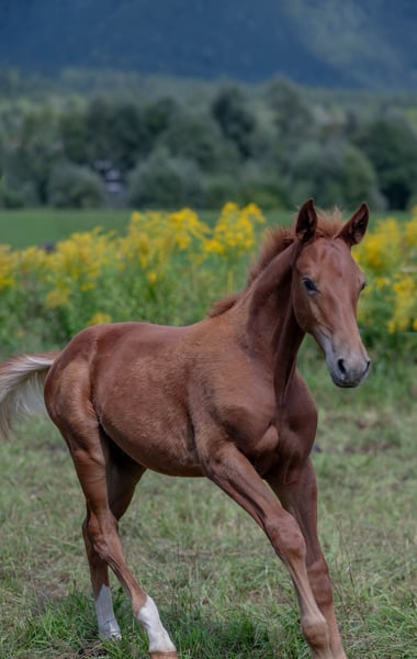 Colt born in April 2025, sired by Cantino out of Don Corazon / Belmondo. Versatile young horse in a striking chestnut color. Correctly conformed and very friendly towards people. Suitable for all disciplines. Ready to move at the end of October. Location: Carinthia.